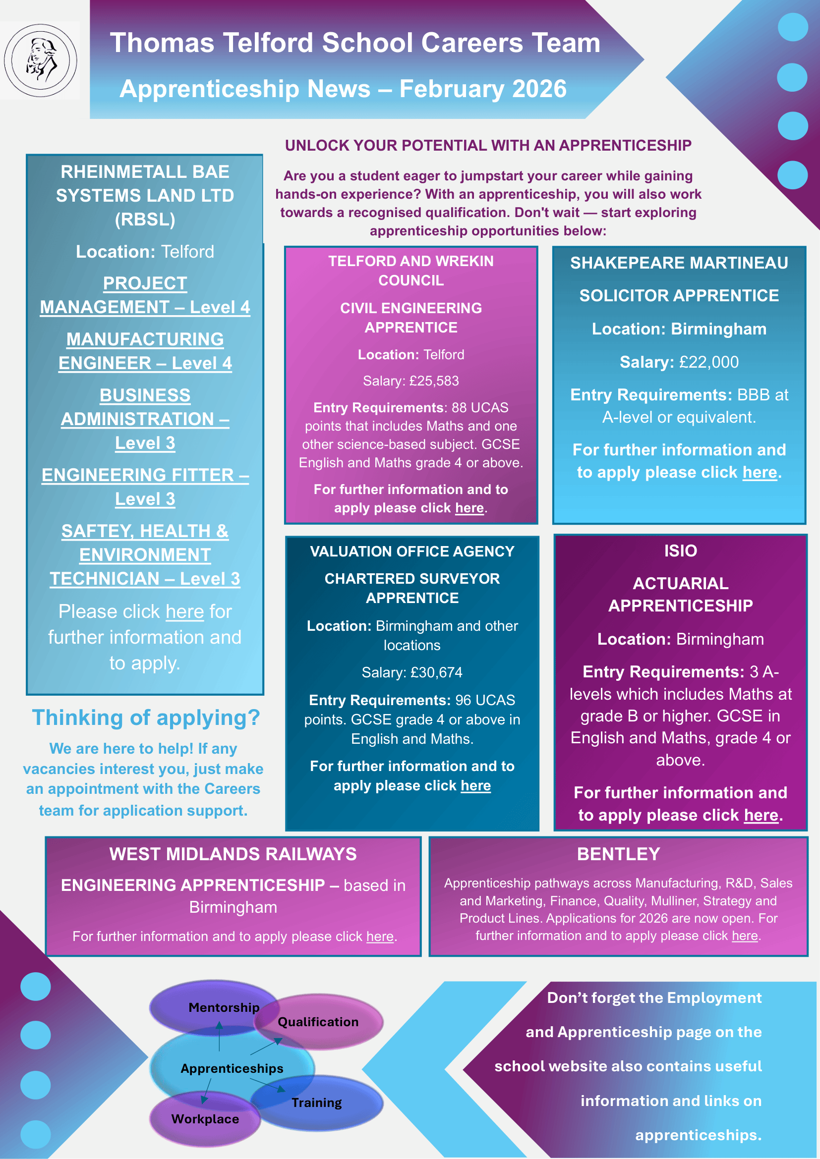 Thomas Telford School supports and is celebrating National Apprenticeship Week 2026! Click here for further information about things happening in school, local events and links to useful resources.